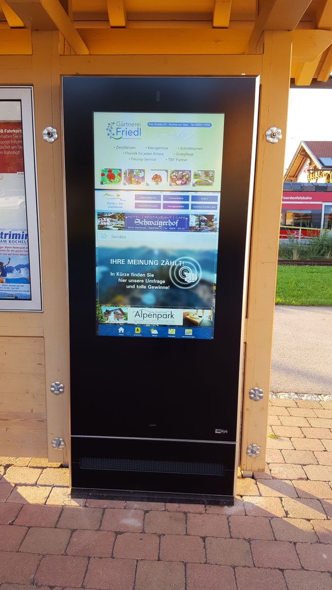 Unsere Outdoor Monitore bestechen durch ihre enorm hohen Helligkeitswerte und ihren optimalen Kontrast durch optical bonding und entspiegeltes Schutzglas. Die Displays sind als freistehende Stele oder als Monitor zur Wandmontage sowie interaktiv mit PCT Touchscreen erhältlich.